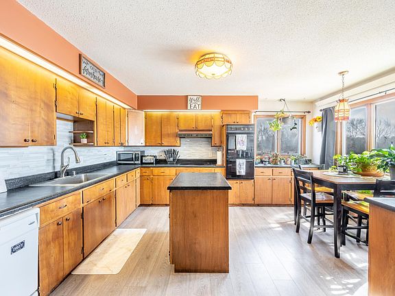 Discover your own country oasis at this nearly 6-acre acreage located on blacktop. This property features a perfect blend of open space and wooded areas. The outbuildings on the property include a machine shed, barn, garage, and several other structures, offering ample space to store all of your equipment & toys or house animals and/or livestock. The large kitchen with plenty of counter space flows seamlessly into the dining area, creating the perfect space for entertaining guests or family gatherings. The main floor primary bedroom provides a private retreat, while the two bedrooms on the upper level offer plenty of space for family or guests. The main floor bath and laundry add to the convenience and functionality of this home. This country home comes complete without a south facing porch, a perfect place to enjoy morning sunrises or evening sunsets. This property also has a newer septic system, ensuring worry-free living for years to come! Horses and bulls not included. ;)