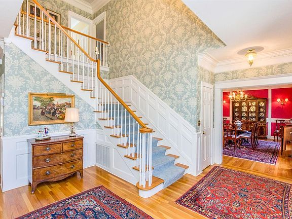 Fall in love with this 2 story Georgian style home located at the end of a quiet cul de sac on 2 acres. The original owner designed and built this house with attention to detail and function. It is warm and inviting with beautiful moldings, wood floors, wainscoting and box and beam ceilings. The home has a master and three bedrooms upstairs and a bedroom/office on the ground floor with 4-1/2 bathrooms. With a terrific flow and spacious rooms it's the perfect home for a family. The kitchen looks out to beautiful rear grounds and opens to the family room. The property also features two 3 car garages - one attached and one detached garage/shop. This unique home is truly the best of both worlds, country living with room for a horse, sport court, pool and chicken coop and yet minutes from work and school. This is a special home you will love and cherish for years to come. Solar is owned. Well is producing 26 gallons per minute.