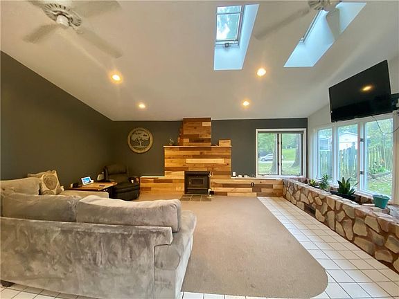 - Interior Features: Walk-in Closet, Fireplace Wood, Workshop Area, Cathedral Ceiling, Skylight, Island