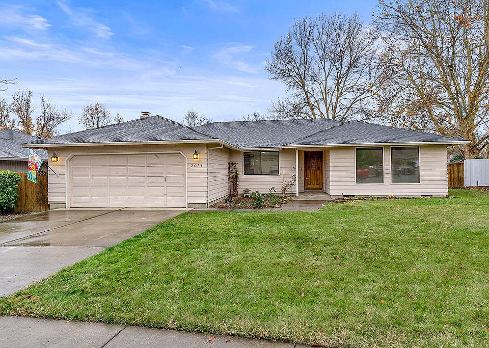 Darling single level, 3 bedroom, 2 bath ranch style house in one of Medford's most desirable neighborhoods. The quiet wide street of Lawnview Drive welcome you to this spacious feeling 1784 sq foot home. In addition to nice sized bedrooms 2673 Lawnview Dr. features formal dining space, separate office or den, laundry room and comfortable living room with a cozy wood burning fireplace, as well as an open concept kitchen. The large backyard with a custom pergola and spacious patio is perfect for summer or winter outdoor entertaining and there is plenty of room for a gardeners dream. Located in the Lone Pine School district and a very short distance from North Medford High School, this lovely property is waiting for your personal touches and won't last long.