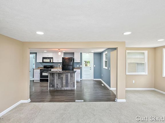 Completely remodeled home inside and out. This affordable 2 bedroom home has a sleek open floor plan with a brand new kitchen, living room, dining room, bedrooms and bathroom. New plumbing, electrical, H2o Heater, most windows, floor covering and much more. Home was recently hooked up to city water. Full basement offers laundry hook ups and ample storage. Large lot with mature trees. Spacious 24 x 20 garage for your cars & toys. All appliances included! Easy to see. Possession at close.