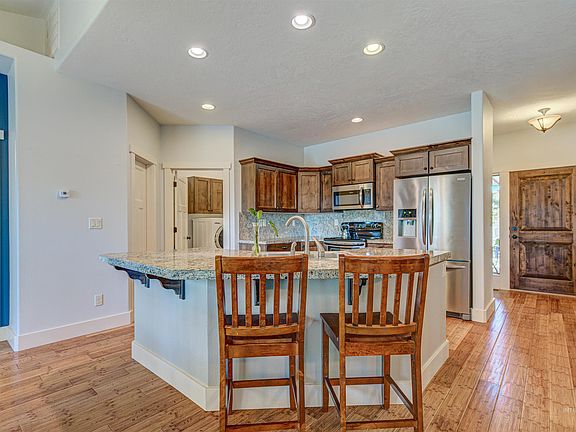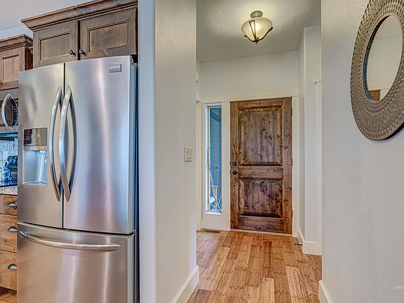 Beautiful custom-built home with a serene backyard and no back neighbors. When you walk in you're welcomed with abundant natural light pouring in from the many large windows in the living spaces. This home has the thought & finishes that showcase the quality in construction, offering bamboo flooring, granite countertops & alder cabinets. Unique bedroom layout & vaulted ceilings help the home feel spacious for all. Large master has a walk in closet and ensuite bathroom. Freshly landscaped backyard offers a patio to enjoy the fall nights or watch the birds & squirrels play in the mature trees. With such a private backyard, you forget how very close to all the amenities you truly are!! Minutes to Settler's park, close to the Village of Meridian, downtown Meridian, shops and restaurants. Home has RV parking + 3 car garage bay meaning room for all of your toys. Be sure to add this one to your list to see!