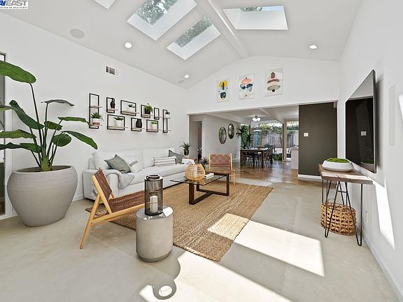 A rare and enchanting opportunity to own a 5-bed, single-story home in the coveted Northgate HS school district. Over 2,000 SF, this dwelling effortlessly marries the essence of mid-century modern (MCM) Eichler architecture with the grace of modern living. Enjoy year round comfort with the new HVAC, central heat & AC. A canvas of floor-to-ceiling windows and sliding glass doors, create an artistic interplay between indoor and outdoor living spaces. A fresh coat of paint both inside and out enhances its aesthetic allure.The heart of this abode, the kitchen, boasts white cabinets, quartz countertops, and stainless steel appliances. A recent addition, inspired by the original atrium courtyard, unveils a cathedral-style ceiling and six skylights that bathe the space in ethereal natural light. This makes it one of the largest homes in the cherished Rancho San Miguel community. Built in 1959, this neighborhood was Eichler's pioneering venture in the East Bay. The homes are rarely available in this area, known for exceptional schools, proximity to downtown easy access to freeways, BART, parks, shopping, and hospitals, is truly a dream. "Turn-key" living. Let it be your canvas to create your vision.