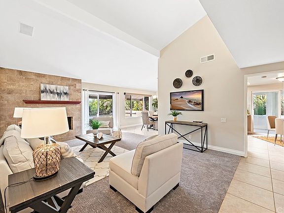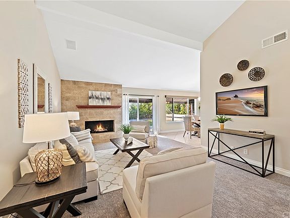 Ready to move before the holidays? This single level 3-bedroom 2-bath property is for you! Freshly painted throughout and new carpet. Walk in through the front door to your spacious living room with vaulted ceilings and cozy fireplace. The living room opens to the private backyard. Speaking of backyards..... there is no one behind you; this property backs up to Mission Viejo Country Club and the sunsets are amazing. Great potential to add a California Patio to this very large private backyard. The master bedroom and dining room also have vaulted ceilings. The kitchen has newer cabinets with granite counters. Off the kitchen is an approximately 280 square foot sunroom/bonus room (not permitted) this square footage in not reflected in the square footage on the MLS. Both bathrooms have been remodeled and have granite counters. Just around the corner is the La Sierra Recreation Center. This property has low tax rate and no HOA. Freeway friendly location plus conveniently located near shopping including the Shops of Mission Viejo. Currently this property does not have Lake access, but it qualifies to join. Don't delay, this is a must see!