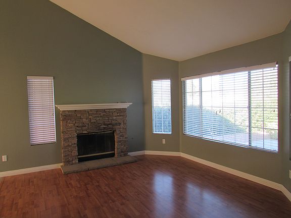 Great 3 bd/2 bth single story home in desirable Horse Thief Canyon Community. Cathedral Ceilings, Custom Wood Burning Fireplace, Hard Wood Flooring in Living Room & Dining Room, Tile Flooring in Kitchen & Baths, Ceiling Fans, Corner lot right across the street from Horse Thief Canyon Park. Property backs up to green belt and has a peekaboo view of the mountains over the back fence. Dog run, 2 car garage. Flagstone Patio and nice sized front and back yards with sprinkler system installed. This is a great home in a great location just waiting for new folks to call it home. Association features a beautiful pool, with a kids splash pool, spa, club house, gym & exercise room, sport courts, tennis, basketball and sand volleyball courts, hiking trails and has a private guards.