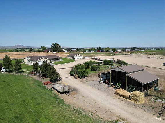 This property has it all. So many possibilities. Hobby Farm/ Livestock/Homestead/ Multi generational self sustaining dream property! Panoramic views of the Owyhee Mountains. Sits off the main road for privacy. Pasture, raised garden beds, 8 variety of fruit trees, and blackberries, blueberries and raspberries .Excellent water rights. Well cared for and updated home with open spacious rooms. Country kitchen w/upgraded appliances. Kitchen opens to the family room with pellet stove. Private master suite. Oversized attached garage. Covered patio's in front and back. Concrete sidewalks and lots of concrete curbing. 2 furnaces/ac units for efficient heating and cooling. 32x40 hobbyist dream shop is fully finished and insulated, has a pellet stove. Concrete RV pad on the side of the shop. 30x30 barn has 2 stalls, power and water and is high enough to store hay in. Domestic well has great tasting water. Expansive predator proof chicken coop. All irrigation equipment stays with the property. Easy to maintain and irrigate. No HOA or CCRs
