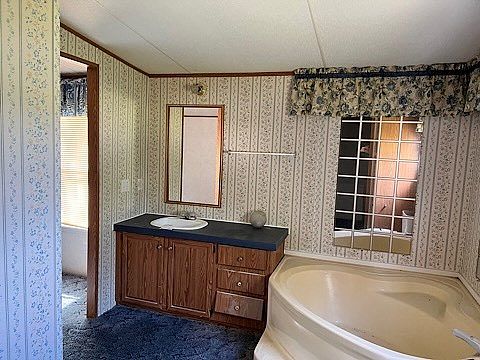 3 bedroom 2 bath mobile home located on 2-acre lot on a country road in Quitman. Country living away from the city. View of the living room from the kitchen with bar area in kitchen. Garden tub and separate shower in master bathroom.