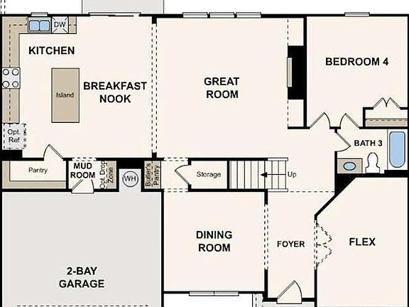 The Birch at Estates at Gainesville showcases a dazzling two-story layout that seamlessly blends beauty, comfort, and functionality. At the heart of the home is a breathtaking vaulted great room, flooded with natural light from an abundance of windows and anchored by a cozy fireplace—creating a warm, open atmosphere perfect for gatherings and everyday living. The beautifully designed kitchen features a large center island, a walk-in pantry, and a charming breakfast nook with direct access to the patio—ideal for indoor-outdoor entertaining. Just off the kitchen, a convenient prep galley adds to the home's practical appeal. On the main level, you’ll find a flexible room that can be tailored to your lifestyle needs, along with a private bedroom and full bath—perfect for guests or multi-generational living. Upstairs, a spacious loft offers additional living space, while two secondary bedrooms share a full hall bathroom and enjoy easy access to the centrally located laundry room. The luxurious primary suite is a true retreat, boasting a generous walk-in closet and a spa-inspired bath with dual vanities, a soaking tub, and a large walk-in shower. An additional secondary bedroom upstairs also features its own walk-in closet and private bath for added comfort and privacy. With its striking design, thoughtful layout, and stylish finishes, The Birch delivers an elevated living experience for every lifestyle.