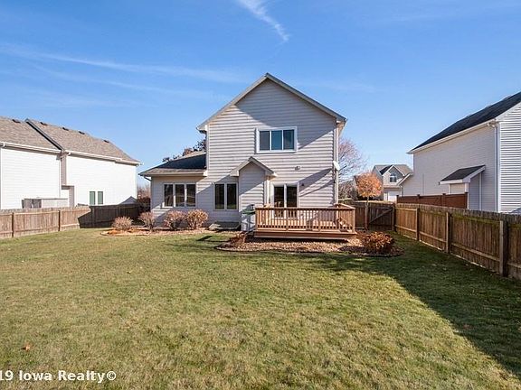 Beautifully unique two-story home in a family-friendly neighborhood that is close to two parks and all of the growth that is happening in the Clive/Waukee area. First floor features a large eat-in kitchen with an island, granite counters, hardwood floors, and stainless steel appliances that stay. Large formal dining room or office is next to the spacious living room with fireplace and newly installed patio door that leads to a recently painted deck. First floor has a half bath. Second floor features three bedrooms, two bathrooms with granite countertops, his/her separate closets in the master, and a laundry room with washer and dryer that will stay. Basement is professionally finished, has an egress window, and includes a recently added modern bathroom with jet tub. An additional 200 square feet of storage also exists in the basement as a bonus. Professional landscaping around the entire home and the backyard is fully fenced to keep kids/ pets safe. All new windows just installed