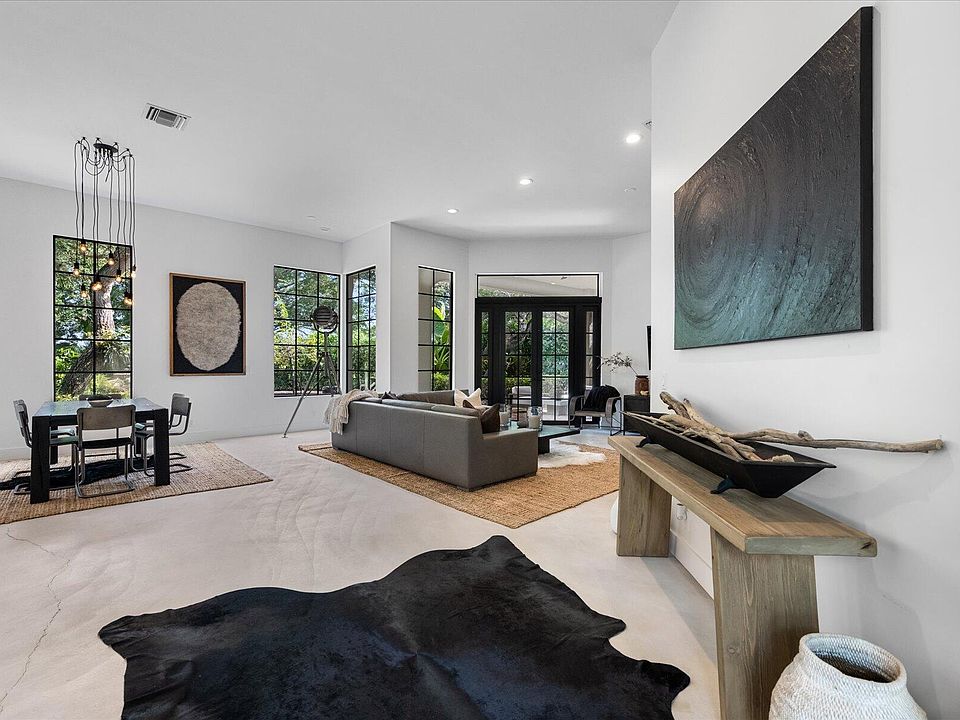 A completely furnished and renovated home resting on a double lot in the coveted neighborhood of Palm Beach Polo. This light bright home features 3 beds/3 baths, impact windows and french doors, expansive ceilings, split floor plan, concrete floors, solid doors and Sonos system. The kitchen is adorned with a Thermador gas range, Subzero fridge and Bosch dishwasher. A secondary bar area is equipped with a wine cooler, ice maker and fridge. The double lots has mature landscape creating a very private setting that perfectly rests next to a large freestyle heated pool surrounded by Chicago brick and backing to the Cypress Golf Course. This additional lot is also buildable!