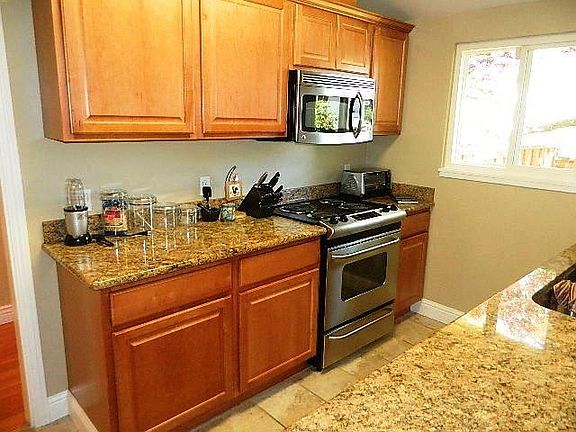 Beautifully updated 2 bedroom, 2 bath, 1427sf. Townhome in San Ramon is available July 21st! Laminated Hardwood floors throughout. Dual Pane windows. Kitchen features granite counters, stainless appliances including, dishwasher, refrigerator, electric range/oven, microwave and bar stool seating counter. Adjoining dining room with slider leading to patio. Huge living room with vaulted ceilings, overhead fan, wood-burning fireplace and slider leading to yard. Master bedroom is very large with recessed lighting, ceiling fan and 2 closets. Master bath features tiled flooring, step-in shower and pedestal sink. Bedroom 2 is good size with large closet. Hall bath has tiled floors and shower-over-tub. Stack-able washer/dryer are included and located in kitchen closet. Back patio features brick patio, mature trees and rose bushes. Central heat and A/C. 2 car carport plus storage shed directly in front of home. HOA dues and water included in rent. Community pool and clubhouse. No smoking. No pets. Please visit www.premiumprop.com for information and call Robert with Premium Properties to view. (No text or e-mails please). 925-998-8133