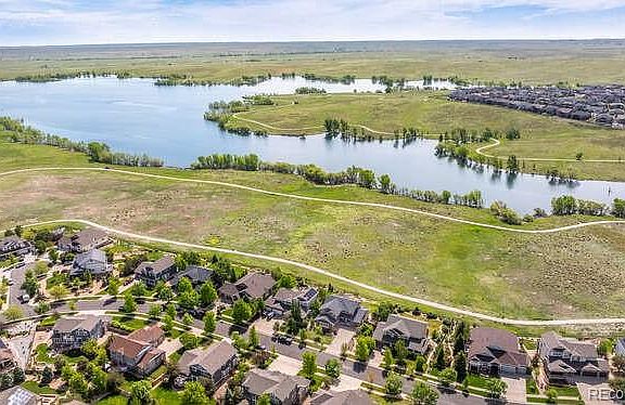 Amazing Beacon Point opportunity awaits! Backing directly to Aurora Reservoir and open space, this home offers unmatched water views, serene walking trails, and direct access to nature just steps from your backyard. This meticulously maintained residence features: 5 bedrooms, 4 located on upper level and 5th in finished garden level basement, 4.5 bathrooms, Gourmet kitchen opens to spacious deck, peaceful spot for morning views, granite countertops, double ovens, gas cooktop, and large island, Open-concept main floor with hardwood flooring, abundant windows capturing reservoir views, Built in speakers, Main-level office and Formal dining room, Spacious primary suite with a private sitting area, 5-piece spa like bath, massive owners walk in closet, and reservoir-facing views! Permitted finished garden level basement with wet bar, flex space for game room, fitness and options! Lower guest suite, 3/4 bath with heated floor, unbelievable media room, projection screen, double insulated for movie night and ample storage complete the basement. Professionally landscaped yard with multi-level patios, deck, fire pit area, plenty of space for entertaining, 3-car garage includes storage cabinets, EV charger, High tech package, too many options to list. If you like to entertain, unwind and relax, go for walks, bike, garden, fish enjoy nature and luxury with good schools, this is the home for you! Welcome to the sunny side where outdoor living is as fantastic as indoor! Fantastic value for this home and lot! Special financing options through Sirva Mortgage available.