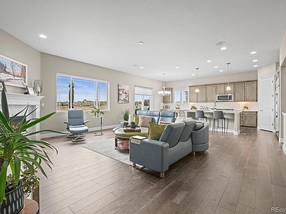 Welcome to your dream home—where luxury, comfort, and functionality come together in perfect harmony. This move-in ready masterpiece features a fully finished walkout basement and sweeping, unobstructed views of the mountains and Aurora Reservoir—a rare find in one of Aurora’s most coveted neighborhoods! Step through the front door into a light-filled foyer that opens to a stunning open-concept floor plan with soaring ceilings and stylish LVP flooring throughout. The heart of the home is the inviting great room, complete with a cozy gas fireplace, built-in surround sound, and seamless flow into the gourmet chef’s kitchen—boasting quartz countertops, 42” modern gray cabinets, stainless steel appliances, a spacious island, walk-in pantry, and sunny breakfast nook. Sip your morning coffee on the expansive deck as the sun rises over the reservoir, or wind down with an evening drink and panoramic mountain views—this is #ColoradoLiving at its finest. But wait—the finished walkout basement steals the show! Enjoy movie nights in your private home theater, get fit or create in the bonus flex space, host guests in the 4th bedroom and ¾ bath, or create the perfect in-law suite setup. The options are endless. Outside, the low-maintenance backyard backs to scenic open space with trail access just steps away—ideal for evening strolls, pets, and playtime. Located minutes from top-rated schools, Southlands Mall, dining, shopping, and E-470, this home offers effortless living with every luxury upgrade you could want.