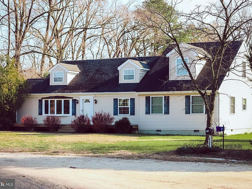 A remarkable discovery! A 3000 s.f. Cape on 2 acres only 15 minutes from Salisbury. It overlooks neighbor' s farm and crops. Backyard goes back to the woods. 4 Bedrooms/3Baths plus sitting rooms off two BRs, a loft and a Bonus Room. Large eat-in Kitchen, Geo-thermal heat for economy, and restore the vegetable garden for your favorite veggies. Plenty of room to enlarge it too. The large garage does not have a driveway to it, so it acts like a workshop or storage shed. The patio is covered so there will be no rained out crab feasts! One of the downstairs BRs has an attached sitting room that could be an office with it's own entrance from the patio. The partial basement has the geo-thermal furnace and a hot water heater and a sump pump to handle any seepage if the ground is particularly saturated. Downstairs there are 3 BRs and 2 baths. Upstairs is a loft, a Bonus room and the 4th BR w/private bath. It includes a sitting/office space that opens onto the second story deck with its new flooring. The septic needs to be replaced and the seller will do so before settlement waiting on Health Department instructions. Here you can have that privacy you want but still be close to UMES, SU, and the hospital.