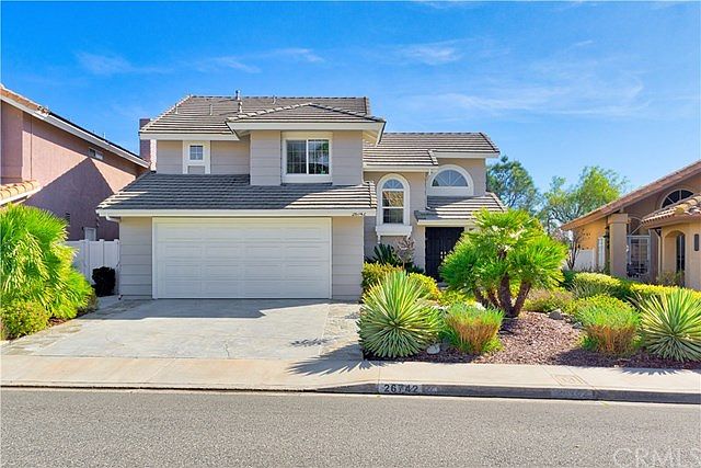 LOCATION...LOCATION...LOCATION...CUL-DE-SAC...POOL...VIEW....Please enjoy this elegant Single family residence in the favorable Auburn Ridge tract of Mission Viejo, where a magnificent homesite offers virtually endless possibilities. Comfortably proportioned at almost 1600 square feet, this 3 bedroom, 3 bath remodeled home shows beautifully. Entering the home you will immediately notice the open floor plan with its high ceilings. Step into the family room and you will be warmed up by the cozy glow of the fireplace. The remodeled kitchen with custom island and multiple built ins opens up into the family room. The hardscaped and private back yard is always ready for great entertainment or a quiet retreat. Indulge in the luxury of a spacious primary master with ensuite bathroom and private deck. The 2 additional bedrooms and remodeled bathrooms upstairs make this home absolutely complete. Additional features: Full PEX repipe (2014) * Double paned windows * Vinyl fencing * EV hookup in garage * Pool and jacuzzi w/ 1 yr old tile & complete replaster (2019) * Variable speed pump for pool * Pool heater * Walking distance to the highly-accredited Bathgate elementary school * Enlarged shower area in master bath * Wood flooring downstairs * New carpet stairway (2019) * Resurfaced driveway, sidewalk, and front porch area (2015) * Hardscape backyard with flagstone and drought-resistant succulents * Automatic sprinkler system front, side and back yard * Lake Mission Viejo access * Low HOA