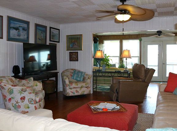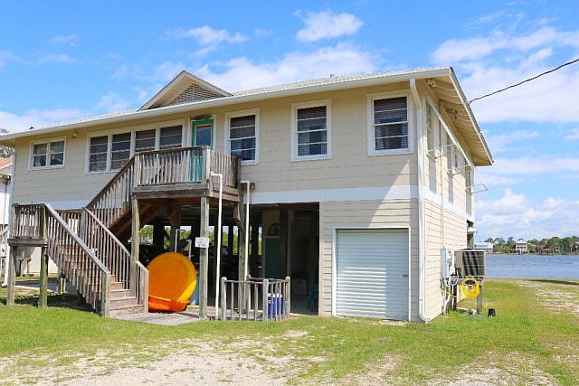 Beautiful 3 bed/2 bath raised beach cottage on large bayou front lot (1.48 acres). Wood floors throughout with neutral color palette and wood tiled ceilings in the living area. Great bayou views from the living room and connecting sun room which lead to the covered back porch. Covered patio and outdoor shower on the lower level leading out to the dock and covered boat slip with lift. Boat slip is 13'x24.5'. Immediate water access into the Gulf thru Perdido Pass.