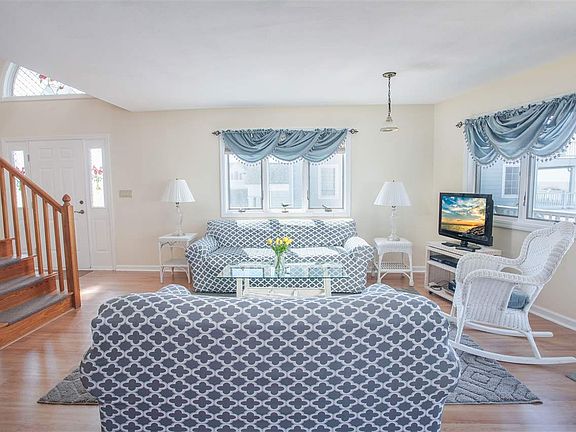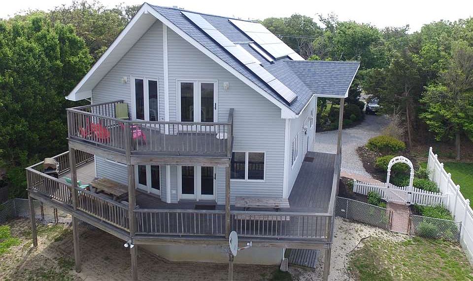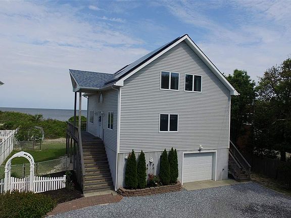 Wow! Wow! And Triple Wow! This beachfront full on water view estate is 75 x 390-foot-deep lot right on the Delaware Bay beachfront. Beautiful ever changing sunset evenings are yours for the taking, with quiet relaxing beaches at your doorstep and easy access for wave runner, kayaks, and SUP's. This 5 bedroom 2 full and one-half bath home is a custom-built home that offers Panoramic views, direct beach access, and mature natural landscaping, once you see this seashore sanctuary, you will never want to leave! The spacious open interior offers a large great-room with cathedral ceiling, dining room and open kitchen combination with large wrap around deck providing miles and miles of unobstructed sunset and water views. A large bedroom, full bath, laundry area and plenty of closets round out your second entry level floor. The home is raised to maximize views, underneath is a 1-car, with extra storage to keep your beach toys and private owners closet and fenced in backyard. In this location you can spend your days kayaking, sailing, fishing, and swimming. There are two bedrooms and a half bath on the first-floor level. Two bedrooms, full tub, Jacuzzi and steam room with shower and another big family room located on third floor with bay and sunset facing deck. This house is surrounded by million-dollar homes and home owners who enjoy the tranquility away from the crowds and yet have immediate water and beach access. Easy to show, furnished with a few excluded items. This property has been rented for past two years at approximately $4200 a week for average of 10-12 weeks. Owner currently has flood insurance of $450/yr. A well is also on this property for landscape purpose only. Call today as this will not last long at this price. MORE: Rental: currently we have 8 full and 1 partial (4 day) week booked. We charge $1000 security upfront when booked which we return providing the guest did no major damage to the property. The security deposit is not figured into the rent figures below because we return it back to the guests. We reduced our price this year to $3800+$170 cleaning fee per week. I reimburse the cleaners at the end of the season. Linens and towels are not provided. Guest bring their own or can rent them locally. After cleaning is removed the net total YTD is: $32800 - 10% management fee = $29520 that the owner gets to keep. 2016 we booked 12 weeks, Last year 2017, we only booked 7. It appeared most rentals in our area were down last year. This year is much more promising, and we expect more of the remaining open weeks to be booked. Yearly expenses: Gas - $750, Electric - $1050, Property Tax - $12400, Home Insurance - $3700, ** Flood Insurance -$650, *Solar- $960. *Solar Panels - Average payment of $80/month is more than offset by panels power generation backing out ACE power. Tesla monitors panels and is responsible for repairs. We are in flood zone B which is considered optimal.