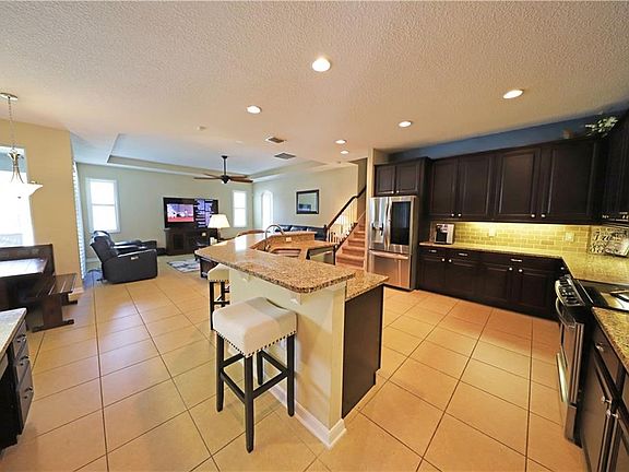 Gated community! Outstanding Renovations throughout this Beautiful 5 Bedrooms/4 Baths, Plus Home Office+Media/Theater room , 3 Car Garage! Shows like a model! Updated Kitchen with granite counter tops, upgraded cabinets, back splash stainless steel appliances! Opens up to a Grand size Family room with Eat in area! Light and bright open concept with a lot of natural light! Tall ceilings! Split plan! 4 Spacious Bedrooms Downstairs! Plus a large private Home Office! 5th bedroom & Bath upstairs with its own Private Huge Game/ Bonus room & an oversize walk in air conditioned, attic storage. Beautiful laminate wood floors, ceramic tiles & plantation shutters throughout! Brick pavers in beautiful covered lanai. Large fenced back yard with PVC fence! Decorator paint and fixtures throughout! 3 Car Garage! Move Right In!! Hurry!! Won???t last!!!