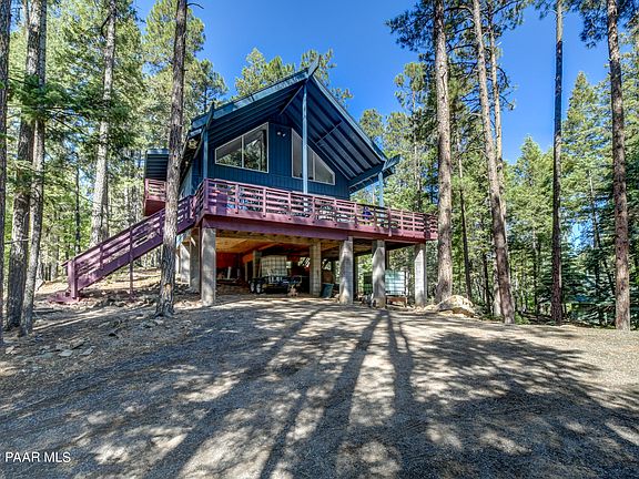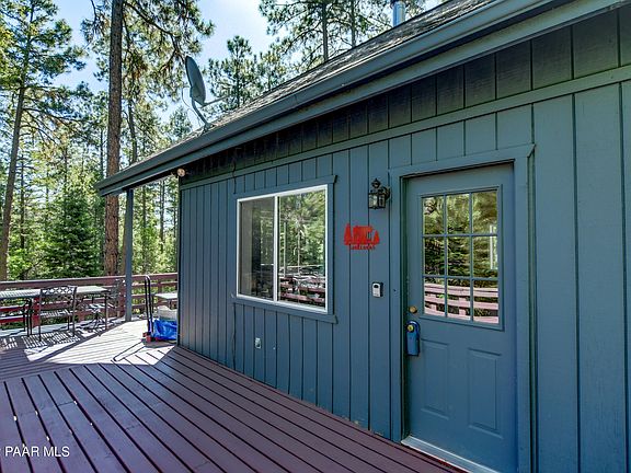 TURN-KEY MOUNTAIN GETAWAY IN THE TALL PINES AT APX 7200' ELEVATION! VERY PRIVATE/PEACEFUL LOCATION. Relax on either the covered or open decks without seeing any neighbors. Additional private deck off of loft. Property is easily walkable (not steep) and has huge parking area that could accommodate a garage, workshop, or game area. 2 bdrms with Q beds on main level plus large ''sleeping loft'' with 3 Q beds. Full baths on both levels. Central heat & wood-burning stove. Great room/dining area are open & airy, with trapezoid windows and 2 sliders, allowing for lots of light and views of the beautiful forest. Most furniture/furnishings convey. Seller will make a list during Buyer's Insp Period of any items they will be removing. Very comfortable & inviting home--MAKE IT YOURS!!!