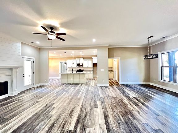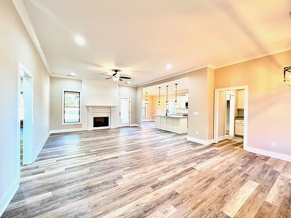 Beautiful new construction home framed by mature trees on a great corner lot. Home offers large living space with three bedrooms two baths down and a large bedroom/bonus room upstairs with separate bath. Wide, open kitchen with large pantry and separate coffee bar/appliance counter. Tankless water heater and separate additional two car garage for entertaining or storage.