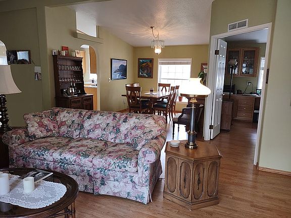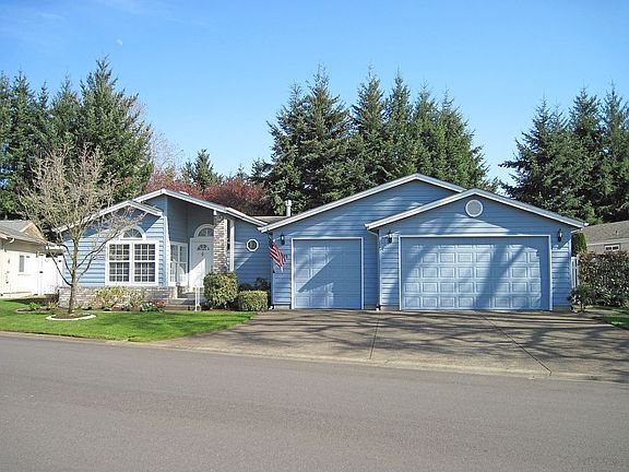 This One Owner, meticulously maintained home is 1600 sq. ft. with a triple car garage. This home features 2 bedrooms plus an office/den, 2 bathrooms, a living room with lots of windows, a gas fireplace and a formal dining room. The beautiful kitchen features a skylight, wood cabinets and a walk in pantry. Appliances including a refrigerator, gas cook top, electric wall oven, dishwasher, garbage disposal & microwave. There is a breakfast nook with great view of the front yard and the large Oak tree. The Master Suite has a separate sitting area, walk-in closet, luxurious master bath & enclosed toilet area. Real tile flooring in entryway and kitchen, laminate wood flooring in dining, living room, den & bedrooms. Faux wooden blinds throughout home. There is an inside laundry room with extra storage cabinets. It has a fully fenced yard with white vinyl fencing and underground sprinkler system. The backyard is professionally landscaped complete with concrete edging, a custom water feature and a large concrete patio for you to sit and enjoy your backyard while entertaining your guests. Patio includes a canvas awning. The driveway has sealed concrete and the home has custom window tinting. Natural gas forced air furnace with air conditioner and a gas water heater. Finished triple car garage with built in cabinets & room for a workshop. Located in Gainsborough, Eugene’s most desirable gated community. Enjoy our waterway, walking trails, fishing pond, clubhouse with dance floor, entertainment kitchen, dining room, exercise room, pool table, ping pong, craft room, barbecue area & more.