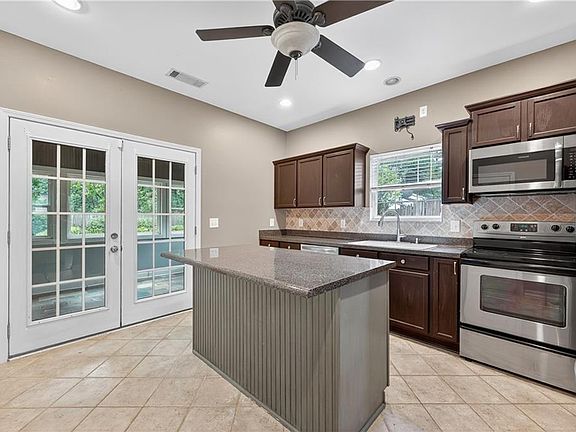Bungalow-style home, perfect for the first time home buyer or investor looking for an easy to rent property. This home offers a great easy-flow floor plan on the main level, including a two-story family room highlighted by a stacked stone fireplace. The kitchen area offers plenty of counter space, kitchen island, stainless appliances and eat-in area. French doors lead out to your sunroom which would be a fantastic dining room or the perfect place to curl up with a good book overlooking your lush, landscaped, & fenced backyard. Upstairs the Primary bedroom is spacious and offers a lovely en suite bath complete with separate shower and soaking tub. Two additional generously sized bedrooms share another large secondary bathroom. There's definitely room for everyone here. The backyard patio is a great spot for BBQing or hanging out with friends or family around the stone firepit area. Near all areas amenities and easy access to GA 400, Lake Lanier, this home will not last long.