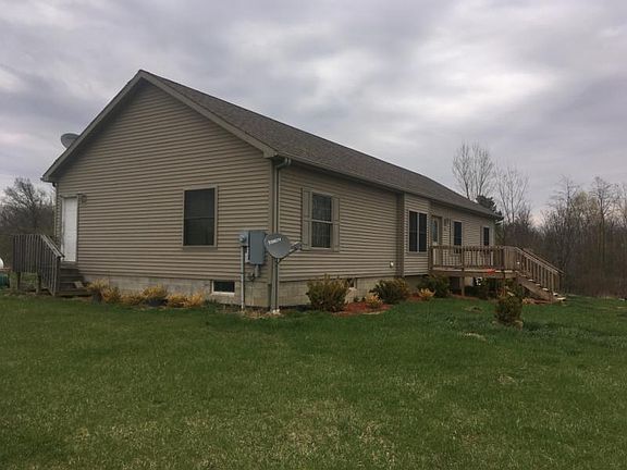 Reduced! Reduced! Check out this awesome view and beautiful 4 bedroom, 2 full bath home on 33 acres all nestled in a private setting. This home features a Jacuzzi tub and walk-in closet in the master bedroom, 9 foot ceilings throughout home, oversized front and back decks for entertaining and a full unfinished walk-out basement with 2 rooms and plumbing ready for a third bathroom. Drive up the long driveway to your perfect country home. The land is tiled with a gorgeous creek running through and is abundant in wildlife. Homeowner is including two 8' by 6' elevated tree stands. Come sit on the back deck and enjoy the relaxing view from your new home!
