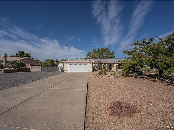 Beautiful Rancho Santa Fe home on the southeast side of Kingman with panoramic views of the Hulapai Mountains. Nearly half an acre lot (.48 acres) with room to build additional garage space and room for a swimming pool/spa in the back yard. Mature landscaping on irrigation timer. Plenty of storage with 2 large storage sheds on side of property. 30-amp on side of property for RV parking.