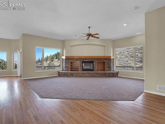 Wow! Views galore. Bring the outside in. This beautiful home is set on a quiet, culdesac lot w mountain, valley, meadow & city views. Enjoy low maintenance living w natural looking artificial turf out front & natural landscape in the back including pine & oak. This home backs to open space w natural views from every window including walk out basement w garden level windows. The open floorplan includes new carpet throughout, and a massive stacked stone fireplace w built-ins flanked by wide windows bringing the outdoor beauty in. Stainless steel appliances, 42" cabinetry, island w cooktop, & walk-in pantry highlight the kitchen / breakfast area w walk out access to a wrap around upper deck. Both decks are long and wrap around the house providing sun and/or shade at different times of the day and have large corner areas for outdoor living furniture sets or hottub (or both!). The master suite also includes walk out access to the upper deck as well and a 5 pc bath w walk in shower, waterfall shower head, raised counters, tile counters & floors & brushed nickel hardware. With 2 bedrooms & 2 bathrooms upstairs & 3 large bedrooms & 2 bathrooms (1 Jack n Jill Bath) downstairs there is ample room. Highlighting the finished basement is the large, open family room with additional bonus room area, perfect for a theatre, game room or gym/excercise area. The basement also has walk out access to the inviting open space out back and lower level wrap around composite deck. A large laundry / mudroom w oak cabinets, & tiled counter workstation are conveniently located just inside the entrance from the garage. The oversized 3 car garage with paved turn around cove provides easy parking, protection and storage. At the foot of Blodget Peak there is National Forest Access, hiking and biking trails, public open space and parks nearby.