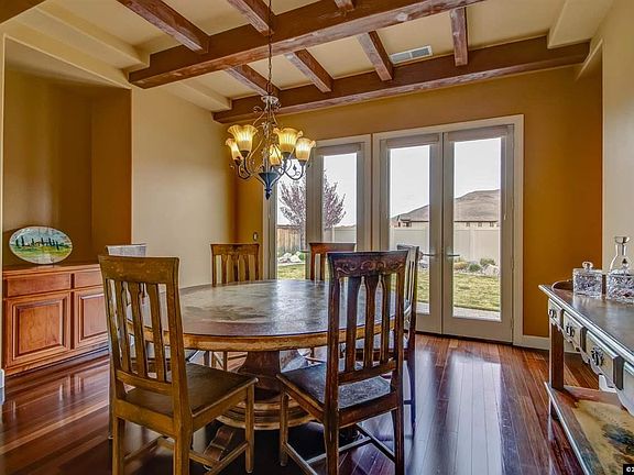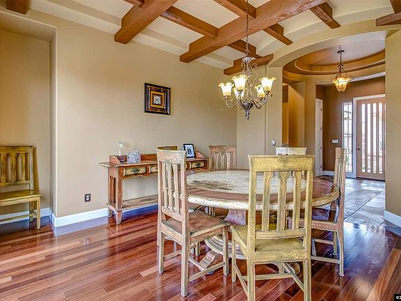 This home has it all, beautifully upgraded. Enter through the gated courtyard through the glass and wood front door. The interior has spectacular slate and hard wood flooring, panoramic windows and surround sound throughout. Dramatic cross beam wood ceilings in separate formal dining room. All 3 bedrooms are suites. Open floor plan with exceptional built in cabinetry and mounted flat screen TV, included. Come home to the safety of a gated community and privacy in your backyard the home backs to open space.