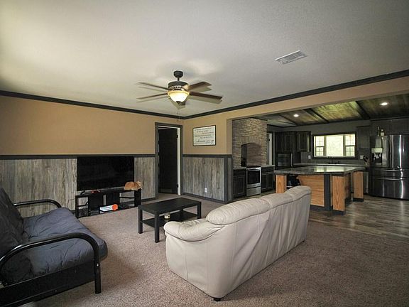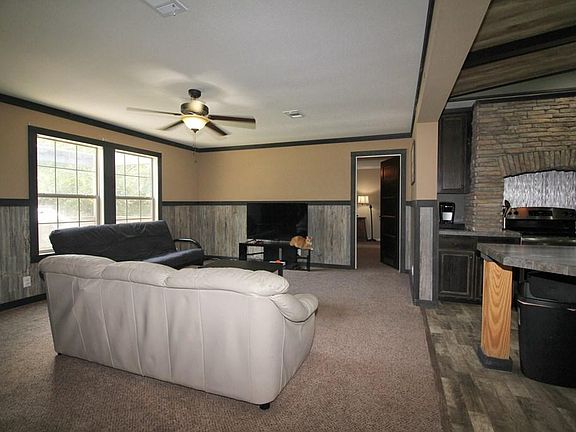 This newer 3/2 mobile home sits on 3.5 acres. Enjoy your morning coffee on the spacious front porch and watch the wildlife around you.This lovely home features an open concept split floor plan with a large formal dining room or den. With a large working island and tonsof counter/cabinet space, this kitchen is a dream to work in. A beautiful wood burning fireplace in the formal dining/den adds the rightamount of ambiance to entertaining. Nice size rooms and neutral color palette offer the right amount of space for anyone. Large Masterbedroom and En Suite gives you the right amount of privacy to relax. The Indoor Utility Room provides the right amount of space andthe added sink is definitely a plus. Come Home to the Country!