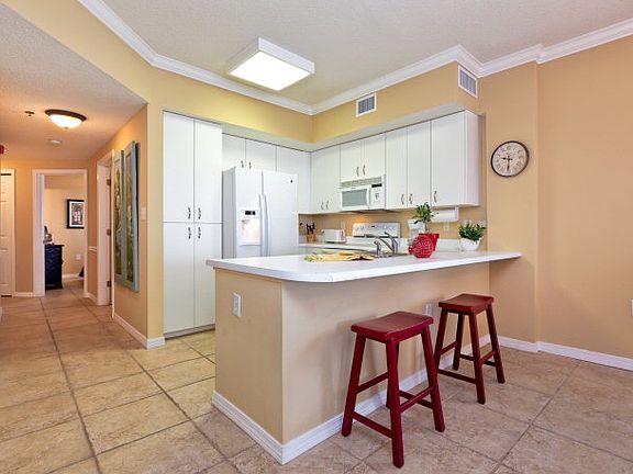 Beautiful 3-bedroom, 3-bath unit. Coveted East corner with large balcony & unmatched views. Second balcony on North side. Tile throughout. Electric Storm Shutters on gulf side windows/doors. Beautiful beach side pool. Indoor pool, gym, sauna. Side by side refrigerator w/ice & water dispenser, ceramic top. Sold furnished. Personal items do not convey.