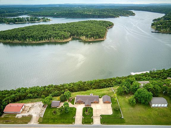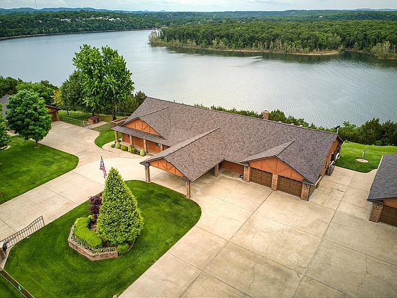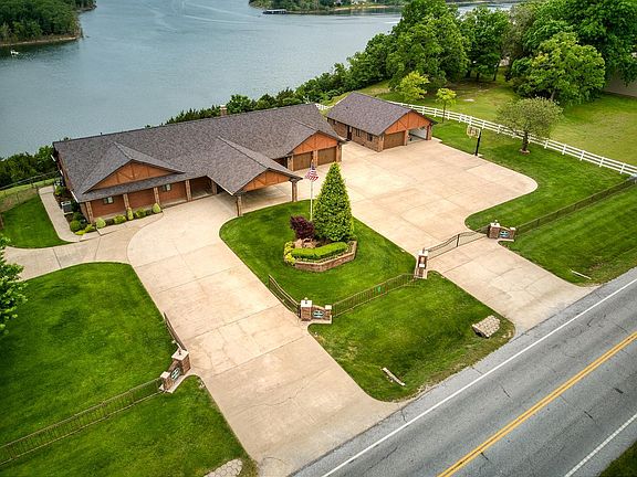 Over the top, fabulous view! Very few views like this one. This 4 bedroom, 4 bathroom, one level living home comes completely furnished! OVERNIGHT RENTALS are possible for an income producing property. The kitchen features solid surface countertops, built in ovens and a gas cooktop. Each of the 4 bedroom has its own walk-in closet. Outside the home is just as impressive with a private double gated entrance with circle drive and a covered portico entry, a 93' deck spanning the full length of the home and a 24' x 10' covered deck are perfect for overlooking the beautiful lake, a concrete pad with RV hookup between the guest house and main house and a fenced in pet area for your furry friends. Guest living quarters allow for visitors to enjoy their own private getaway. Below the guest living area is a garage big enough to hold a boat and a pair of PWC's. An attached 2 car garage and matching detached 2 car garage offer plenty of additional parking spaces or storage. BOAT SLIP IS AVAILABLE! Dont miss out on this lake dream!