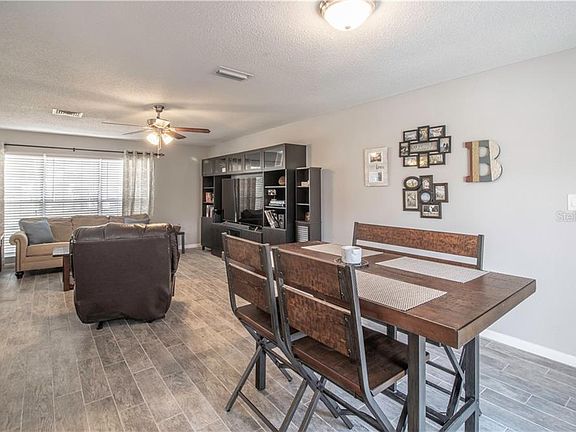 The neutral colors and finishes, an oversized yard with custom amenities, and a premium lot with views of an open park area will appeal to many current homebuyers. This lovely 3 Bed, 2 Bath home has been well-maintained by the current owners and features easy-care flooring throughout the main living areas, multiple sliding doors to the outdoors, and a wide-open floor plan to give it an airy and casual feel. Step inside to the foyer and you have views of the Living and Dining room to the left and the Family Room straight ahead. The Kitchen is really the heart of the home, with granite counters, stainless appliances, and access that flows to each part of the home. The Master Suite is split from the secondary bedrooms and includes a walk-in closet and spacious bath with granite counters and a huge shower with tub. On the other side of the home are the secondary bedrooms and another full bath. A hidden gem is in the fenced backyard, with a 680 sq ft canopied patio, firepit area, and a nice mix of open sun and shaded areas. The community has easy access to I-75 for commuters and plenty of nearby restaurants and shopping available at The Grove, Wiregrass Mall, and Tampa Outlet Mall.