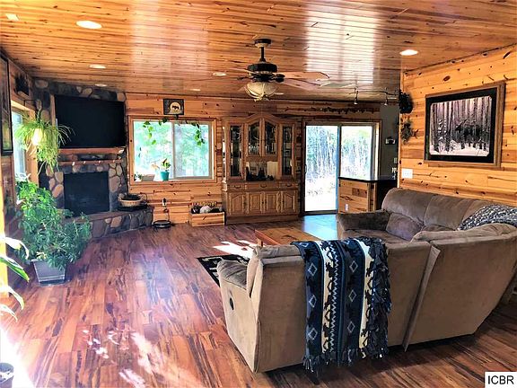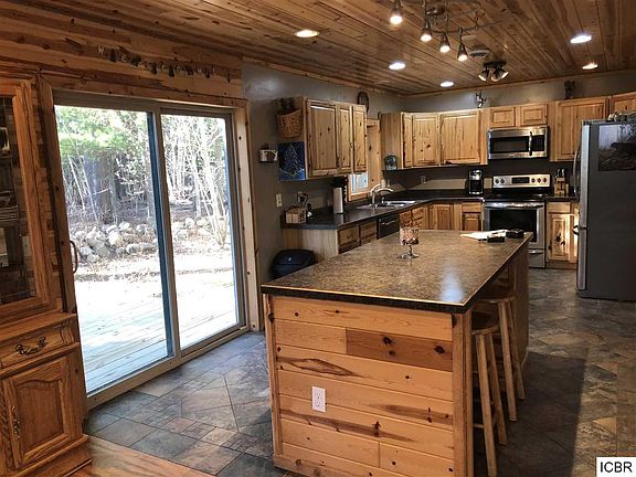 This gorgeous home sits on 5 acres & is bordered by county lands. There are trails throughout the property with ATV trails close by. The home and all its outbuildings are constructed of maintenance free metal sheeting. The inside is constructed and decorated with an "Up North" Flare that includes ponderosa pine tongue & groove, pine paneled doors, log railings throughout, rope trimming, pergo flooring, custom ceramic tiling, lighting fixtures & ceiling fans, hickory cabinets, stainless steel appliances & stone fireplace with propane insert. The master bedroom has a custom built shower that is absolutely beautiful. Outbuildings include a storage shed, detached garage, chicken coop that have electric & lights, & bunkhouse. The main floor has in floor heat as well as forced air and stone fire place. There is an oversized boiler in case any new owner wants to do any future add ons. There was also recently a new morton water softener installed.