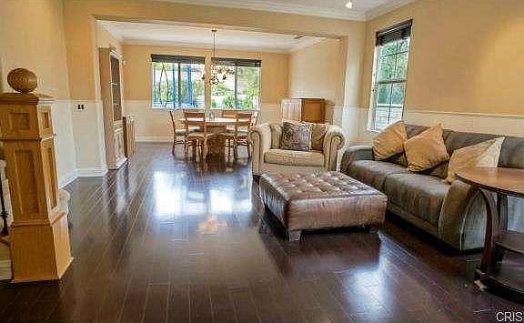 Gorgeous Pacific Summit pool home on a private flag lot at the end of a cul-de-sac. Open floor plan with spacious living room, dining room, and family room plus additional dining area that opens to the kitchen. Wood and tile flooring downstairs and carpet up. Custom fireplace, built in bookcase & entertainment center, and surround sound in the family room. The kitchen has a huge center island/breakfast bar, large neutral tile counters and backsplash with mosaic inlay. Double ovens, Viking stove, and fridge are included. Master bedroom has a large retreat and 2-sided fireplace. The master bath features a spa tub, large shower and 2 walk-in closets. The additional 4 bedrooms are large in size and one has a private bathroom and turret retreat attached. Other nice touches within the home include wainscoting , crown molding, track and recessed lighting, wood blinds, and roman shades. The private back yard is perfect for entertaining with its covered patio, built-in BBQ, sparkling pool & spa, fireplace, and large grassy area for pets and play. 3-car garage finished garage has overhead storage and epoxy flooring.