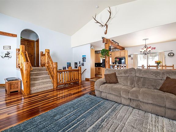 This well maintained home is immaculate inside and out. Features 3 bedrooms and 2 1/2 baths. Open floor plan with Brazilian cherry wood floors. Interior log accents throughout. Master bedroom has walk in closet and ensuite. Lower level boasts 2 bedrooms with rec/office room with walk out to large back yard. Luminate Broadband wired for internet access. Attached 2 car garage with plenty of storage. Brand new roof, blinds, paint, retaining wall and landscaping. Grand views of the Zirkel Mountain Range. Property backs up to over 100 acres of Greenbelt.