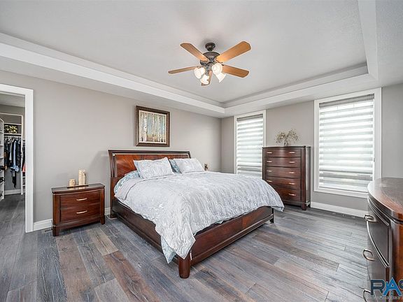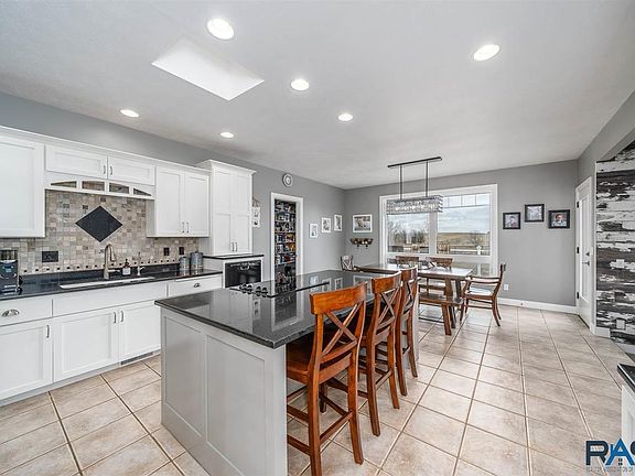 Beautiful home on 9+ acres, and only 8 minutes from Sioux Falls! This ranch style home is in immaculate shape, has an indoor basketball gym, and a 28 x 48 insulated/heated outbuilding! The main level is spacious and bright and features 2 bedrooms plus an office, 2 and ½ baths, main floor laundry, and a living room with vaulted ceilings and a fireplace. The amazing master suite has hardwood floors, a private bath with double vanity and heated floors, and an 18x12 walk-in closet! The kitchen boasts white cabinets, a large island, granite throughout, and a dining room that is perfect for gatherings. The lower level has 9 ft ceilings, a 40x34 indoor gym, 2 large bedrooms with walk-in closets, 2 bathrooms, a family room made for entertaining, and an exercise room. All of this sits on 9+ acres with a 28x48 insulated/heated outbuilding, fenced yard with sprinkler system, professional landscaping and patio sitting area, and mature shelter belt.
