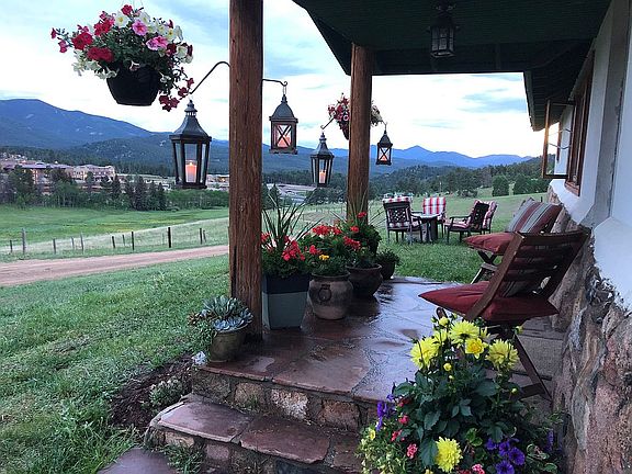 Don't miss this one-in-a-million opportunity to own this beautiful and historic 10 acre mountain horse property. The home was originally a dairy barn built in the 1800's on the original homestead. It was converted to a home in 1922 and today is updated with original charm in place and is a light & bright, cozy yet spacious home and part-time AirBNB. Many wonderful features. The dining room is the original silo, the wagon wheel in the kitchen was from a working wagon on the property in the 1800's. The living room features a giant fireplace, stone flooring and original ship-lap walls. Views out every window! The ranch boast 10 acres of mountain grassland with amazing views, a charming 8 stall barn (currently converted to four 12x24 stalls) with runs, water and electric, a tack room, two tack areas or garage spots, hay loft, workbench, 60x145 outdoor riding arena with lights. Bridal trails through the pasture with jumps. Smooth wire fencing and cross fenced. Part time AirBNB revenue for 2021 was $76,000 at 45% occupancy. Could easily double that if it were full-time. VIEWS! VIEWS! VIEWS! Feels like you are far from it all but only moments to shopping and just a 35 minute commute to downtown Denver. Buyers agent commission 2.8%