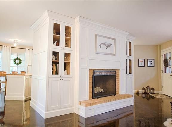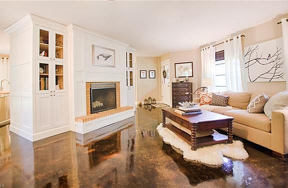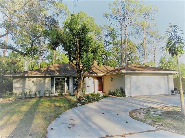 Beautiful, elegantly updated home on acreage close to downtown Naples. The southern-style kitchen has classic custom wood cabinetry with extra deep upper cabinets and lower cabinet drawers. Cozy fireplace has wrap-around built-in bookshelves. Stunning acid-stained original concrete floor throughout. Two extra large bedrooms with walk-in closets provide ample living space. Enjoy the serene view from the back porch. Generous 2-car garage and 3 sheds on property provide ample storage. Water softener, water heater, A/C evaporator, and pumps have been recently updated. Alcove in guest bedroom is the perfect size to turn into a built-in bunk bed or built-in desk. Plenty of room to add on. Second owners updated the house with the intent to live there forever.