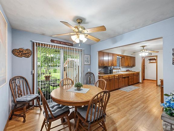 Once the model home for the neighborhood, this Mid-Century 3 bed 2 bath all brick ranch home continues to charm all who enter. Original elements abound such as natural hdwd floors in all 3 bdrms, stone fireplace, and a vintage divider at the entryway to name a few. Updates include: laminate in the kitchen, dining area and main bathroom, newer windows including living room bay window; gutters, soffits, facia, roof. The spacious mud room is perfect for an open pantry with plenty of room for an additional freezer. The attached 2 car garage is heated and air conditioned with a center drain in the floor. The large fenced in yard works well for entertaining or relaxing in or out of the hot tub. This rambler has something for everyone! Centrally located and within walking distance to downtown Portage restaurants, grocery and Founder's Square, which hosts many open air events and entertainment. Home warranty included.