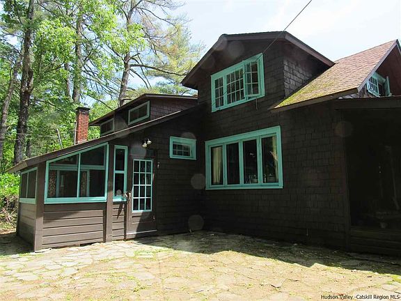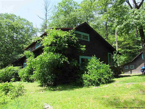 Come quickly to see this 1924 original,quintessential Byrdcliffe home (in the style of Paul Falco) adjacent to the lands of the Brydcliffe Arts Colony and just minutes to town center. Privately situated with seasonal views of the mountains; lightly wooded with meadows. Stone walls and rock out croppings throughout the 9.6 acre property. This Byrdcliffe vintage charmer features three bedrooms/2 baths and has been in the same family for 48 years. Signature brown with turquoise trim,classic hardwood and painted floors, beamed ceilings, eyebrow windows, brick fireplace, and a LARGE and FABULOUS screened in porch for warm summer entertaining with the fireflies. Quaint built in window seating and storage in the bedrooms and windowed entrance (also used for warm weather breakfast nook) Hand built stone outdoor bbq with semicircular stone seating. A similarly styled large outbuilding has 2 summer bedrooms (one is a loft) and a summer bathroom; work studio/storage and garage. Home and land offer an artists vision of character and charm that cannot be duplicated in today's world.