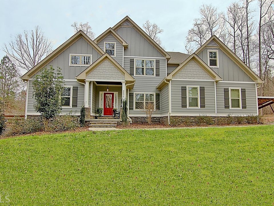 Wish you had a NEWER CRAFTSMAN style home with a FULL FINISHED BASEMENT on a 5 ACRE PRIVATE ESTATE SIZE LOT IN SENOIA? This inviting home is for you! Walk into the two-story foyer flanked by an amazing dining room with "on-trend" wood ceiling. Very open floor plan with family room open to the eat in area and gourmet kitchen. Granite counters, farmhouse sink, tile backsplash, island with breakfast bar and stainless appliances including refrigerator. Hardwoods throughout main level. Meticulously maintained! Spacious MASTER ON THE MAIN with gorgeous ensuite with huge tile shower, jetted tub and double vanity with quartz counters. Custom master closet with all the space you will ever need. Large laundry room and pantry off the kitchen area. Enjoy your covered GAMEDAY PORCH with cozy fireplace and beautiful wood ceiling. Perfect for entertaining and overlooking the private wooded fenced yard. Upstairs you will find 4 large bedrooms, 2 full baths and a totally SEPARATE OFFICE for your work at home needs. FINISHED TERRACE LEVEL includes 4 finished spaces and a full bath. Recreation room opens to the custom built-in bar, theater room, office space, huge finished storage and a safe room. One of the rooms could easily be converted to bedroom and make an awesome in-law/guest quarters. Enormous patio area outside terrace level. Additional property features are 4 CAR PARKING with attached garage and a custom-built carport with architectural details, top of the line gutter guards, tankless water heater and much more. Must see to appreciate this beauty!