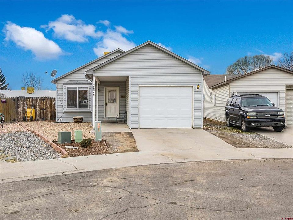 Darling starter home! One level Ranch Style home with three bedrooms, two bathrooms. Move in Ready. Vaulted ceilings, and a large living room that is open to the dining area. Newer laminate flooring in the kitchen and bathrooms. The kitchen has lots of countertop and cabinet space and a large breakfast bar. The one car garage is perfect for a smaller car or just to store all your toys. Privately fenced, landscaped, and a nice covered patio for your outdoor entertaining.