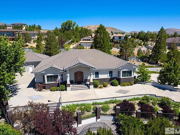Enjoy the million-dollar view from this stunning estate, set on a one-acre parcel within a gated community in the beautiful West Carson City neighborhood. This custom-built home is truly one of a kind, with breathtaking views of the city, mountains and valley. The In-law suite offers its own separate living quarters, complete with a garage, living room, kitchen, bathroom and two bedrooms., In the main house, you'll find a gourmet Viking Professional kitchen, fit for even the best home chefs and equipped with four ovens, two warming ovens, both gas and electric cook tops, a built-in dishwasher, trash compactor and a Viking refrigerator and wine cooler. The great room makes an ideal space for entertaining and has a built-in bar that provides seating for ten guests along with a True Cooler, dishwasher and sink. The oversized primary suite is the epitome of luxury, with its en suite fireplace and a large, spa like bath complete with a steam-room rain shower and walk in dressing room. This elegant 4,966 square foot home has been finished to a tee, and altogether boasts three fireplaces, eight-foot cherry wood doors and cabinets, a 36'x16' bonus room, and an oversized five car garage. Outside you'll find a private, fully fenced and landscaped yard, with RV access/parking and an expansive back patio perfect for outdoor entertaining and Summer barbecues. This gem of a home is truly a rare find, and surely won't be on the market for long. Set up your showing today!