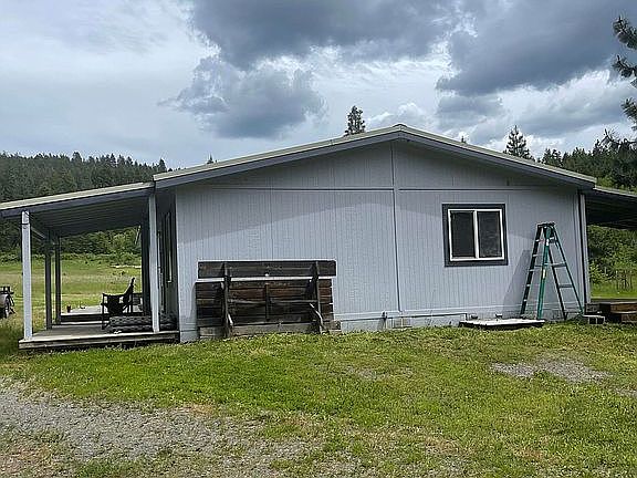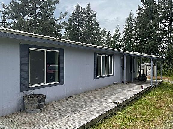 For sale by owner. 1997 Marlette manufactured home on 11 acres new carpet and paint throughout. 22 miles to Colville, 17 miles to Kettle Falls. Great mountain views. Fenced garden area with fruit trees. Lower field is approximately 4 acres of sub irrigated grass. Multiple areas for horses/livestock. 230 yards of year around creek. 2 large storage sheds. Two 45' shipping containers with trussed over roof. 5gpm well with new 2000 gallon holding tank and pump. ATT cell service. Internet via satellite. No owner contract, will not rent. Contact Jan (509)684-8569 for showings. Leave message.