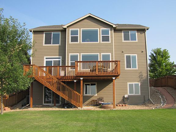 Stunning home with a walkout basement and unobstructed views of the Front Range. Main level has Dining Room, Office, Family Room with fire place, Beautiful kitchen has granite, island, maple cabinets, built-in desk, Double Ovens, Gas Range and Microwave. 4 bedrooms and a loft upstairs. Master suite has a 5 piece bath and a huge walk-in closet with island. Garage is equipped with HighLift garage doors and the Race Deck floor is included! Large backyard with trex deck. This is a must see property
