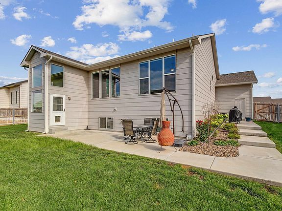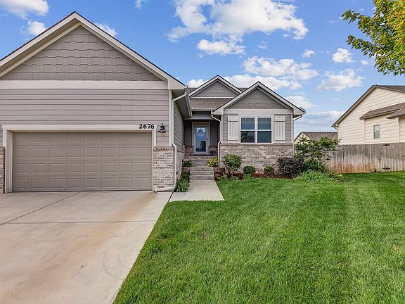 Better than new! This beautiful 4 year old Southern Ridge home in Goddard district has nice upgrades and finishes including Eco Water reverse osmosis & filtration system, durable LVP flooring installed 2022 on main floor including bedrooms, full and more elaborate landscaping than traditional newer build, wood privacy fencing, expanded concrete patio, extra concrete and steps off the side yard near garage. Amazing windows flood the upstairs with natural light. Quartz counter tops throughout. Both entry doors are custom upgrades including a pet door for backyard. Beautiful white enameled woodwork throughout home. Sprinkler system and irrigation well. Sellers recently installed the additional low maintenance landscaping along the fence line and as an added bonus which not only looks great but keeps your pups from running the fence line and flattening the grass. Landscaping has been under contract for professional fertilizer and aeration. Kitchen refrigerator remains and transfers to buyer with acceptable offer. Basement TV is negotiable and available for sale to buyer. All information deemed reliable but not guaranteed. Buyers agent to confirm schools.