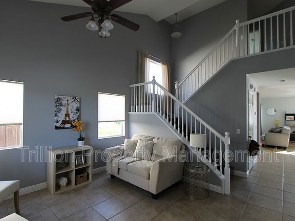 Beautiful home for rent in Menifee! As you enter the home you are met by the spacious open concept formal living room which features vaulted ceilings, custom paint, large windows, and tile floors. The highly upgraded kitchen offers stainless steel-appliances, quartz counters, custom cabinets that provide lot's of storage space, custom tile backsplash, walk-in pantry, recessed lights, and a kitchen island with seating space that conveniently opens up to the family room. The family room includes upgraded blinds, lot's of natural light, and a sliding door that leads out to the backyard. The large master suite comes complete with high ceilings, ceiling fan, walk-in closet, and a master bath with dual sinks. All other bedrooms are a great size as well. The huge backyard has a concrete patio area and lot's of extra lawn space which makes it the perfect place to entertain family & friends! Don't miss out!