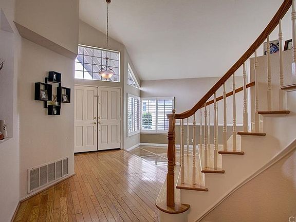 This is the Auburn Ridge view home that you have been waiting for. Ideally located on a cul-de-sac street, you will love the curb appeal of this stunning home with its 3 car garage and river rock facade. As you enter this home you are greeted by breathtakingly high ceilings, hardwood floors, and dramatic curved staircase. Throughout the dinning room, kitchen, and family room is elegant travertine floors with marble accents. The kitchen features granite counter tops, white appliances, recessed lighting, gorgeous wood cabinets, and a great view to the backyard. You will love the master bedroom with its soaring ceilings, walk in closets, and panoramic views to the hills and city lights beyond. The well appointed master bathroom features marble floors and backsplash, dual sinks and large soaking tub. Large secondary bedrooms and the secondary bathroom is tastefully upgraded with travertine floors, marble counter tops, and dual sinks. In the backyard, you have mature landscape and fruit tree, not to mention a stunning view, and an appealing stone paver patio. Conveniently close to the highly rated Bathgate Elementary School. Enjoy membership to lake Mission Viejo with swimming, fishing, boating, volleyball, paddle boarding, and summer concerts.